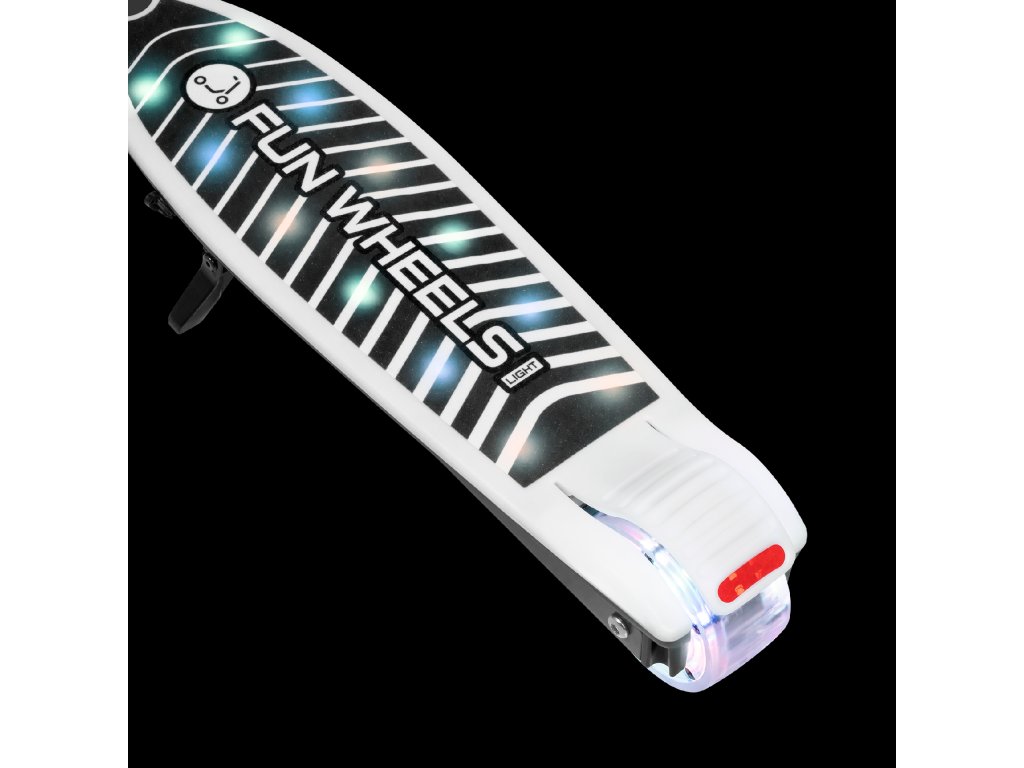 Farebné osvetlenie kolies a dosky robí kolobežku Fun Wheels Light výnimočnou medzi ostatnými a poskytuje množstvo radosti počas jazdy. Svetelné efekty zvyšujú viditeľnosť dieťaťa, najmä pri súmraku, a zároveň dávajú kolobežke moderný, atraktívny vzhľad, ktorý očarí každého malého používateľa.