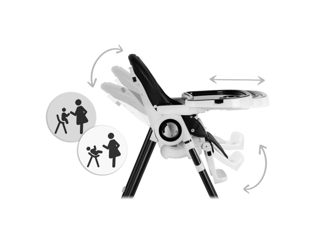 - môžete nastaviť polohu podnosu alebo ho odstrániť, keď chcete dieťa vybrať z vysokej stoličky alebo ho priložiť k stolu pri rodinnej večeri