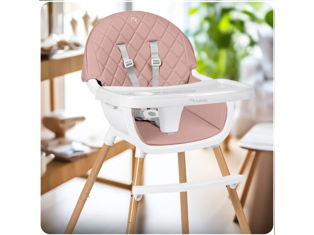 Podpora správneho držania tela: perfektne navrhnutá vysoká stolička NUKIDO podporuje správne držanie tela dieťaťa pri jedle a hre.
