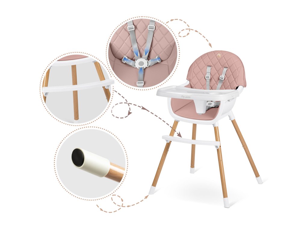- Dodatočné zabezpečenie , ktoré zabráni samovoľnému pádu dieťaťa zo stoličky. Dajú sa úplne rozobrať, keď už nie sú potrebné.