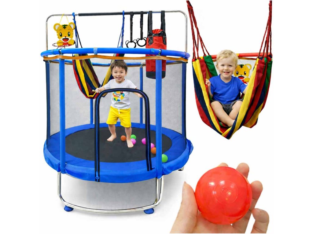 Pohyb je pre deti prirodzenou súčasťou dňa, preto by mali mať prístup k hrám , ktoré ichrozvíjajú, a nie len zamestnávajú.Okrúhle trampolíny podporujú plynulosť pohybu a správna veľkosť trampolíny im umožňuje voľne skúmať priestor. Práve pohybová koordinácia a mentálny a motorický rozvoj sa rodia, keď hra nemá žiadne vnucované vzory. Súprava obsahuje basketbalový disk s motívom tigra spolu s loptou apumpičkou, 12 farebnýchloptičiek, hojdaciu sieť s úložným vreckom a dve cvičné držadlás popruhmi. Celú súpravu dopĺňa multifunkčné boxovacie vrecko alebo vrecko na príslušenstvo s párom rukavíc.