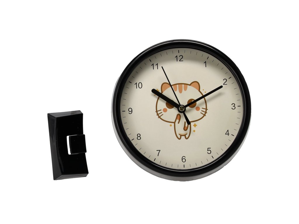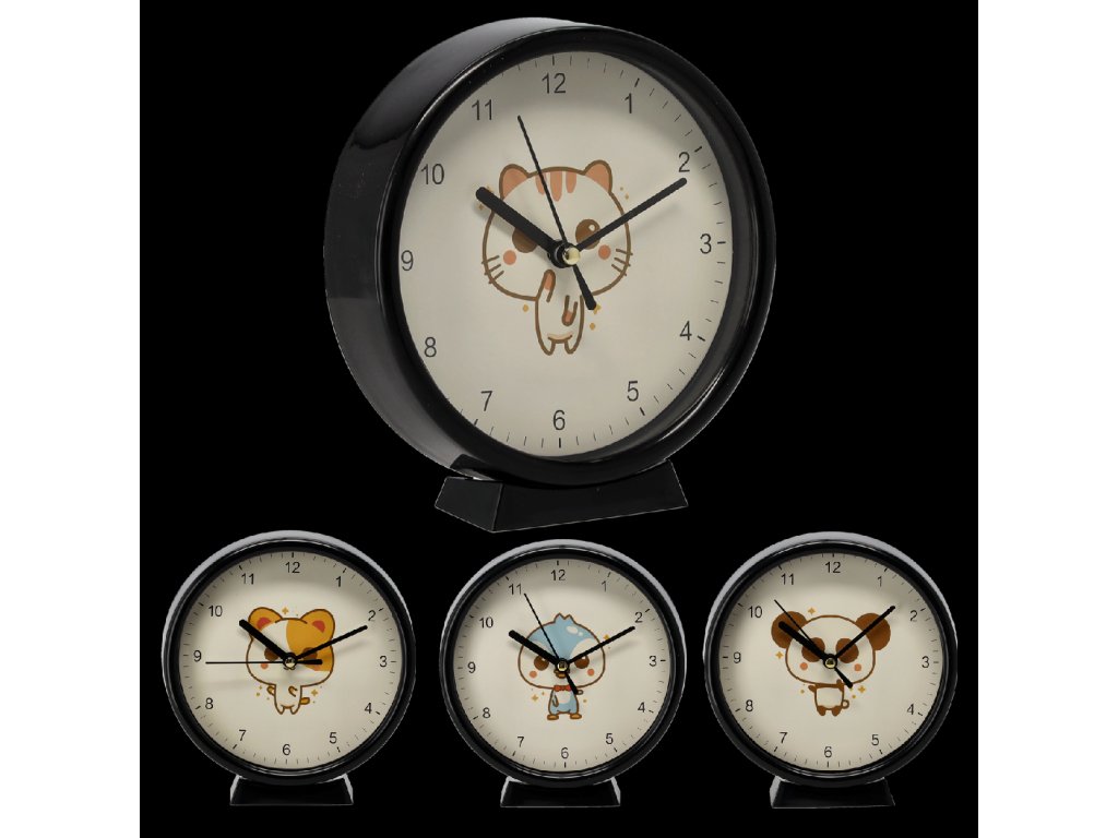Farebné detské hodiny okrúhleho tvaru s čitateľným ciferníkom a arabskými číslicami. ## Možnosť zavesenia alebo postavenia vďaka ## podstavcu. Ideálne na učenie sa hodín a dekoráciu detskej izby. Produkt predávaný v mixe vzorov.