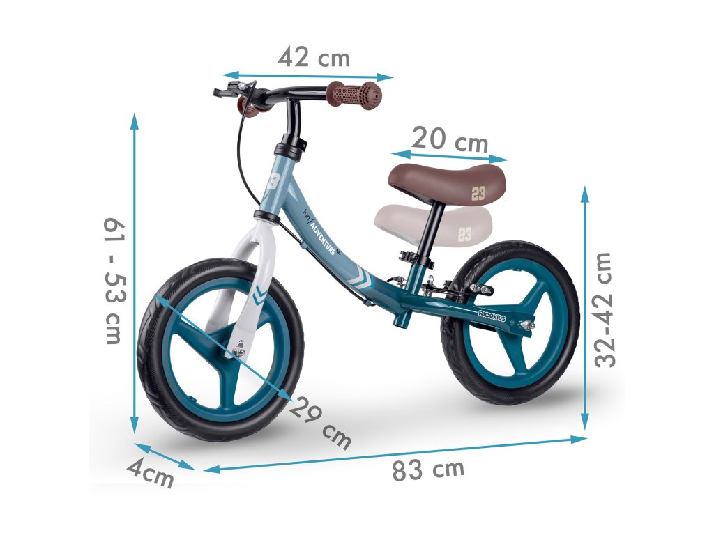 - Dlhší čas používania: možnosť nastavenia výšky sedadla až o 10 cm umožňuje prispôsobiť bicykel k meniacej sa výške dieťaťa, vďaka čomu môže byť používaný dlhšie.