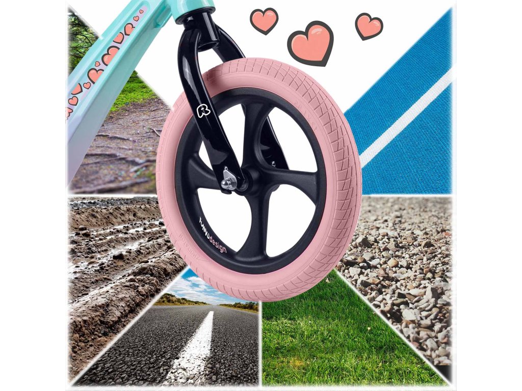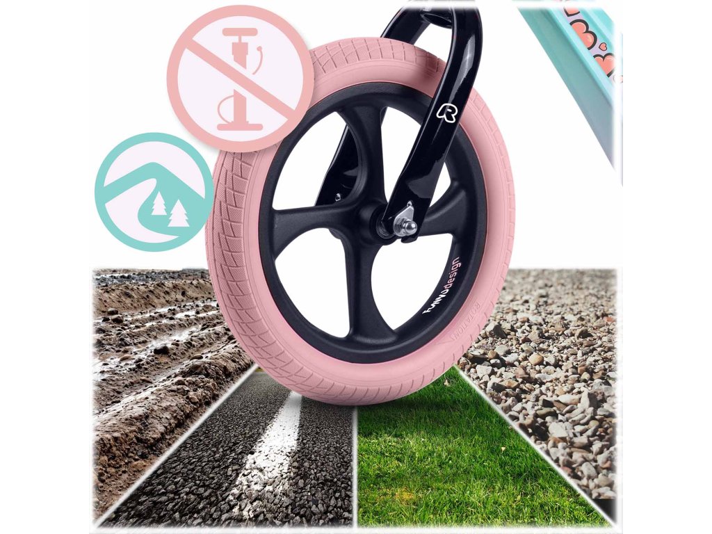 - Koleso: veľké, pevné koleso z peny EVA s trvanlivou pneumatikou, zaisťujúce stabilitu a plynulú jazdu.