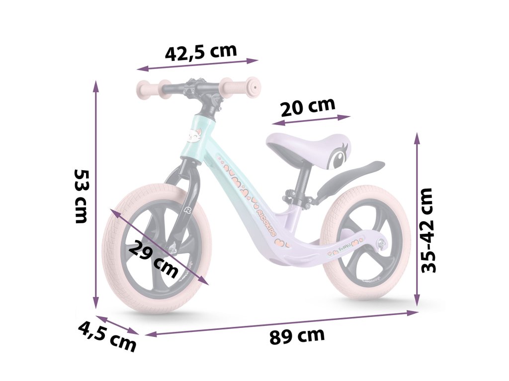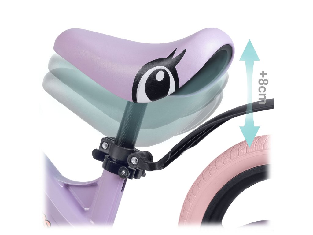 - Dlhšie obdobie používania: možnosť nastavenia výšky sedadla až o 8 cm umožňuje prispôsobiť bicykel meniacej sa výške dieťaťa, vďaka čomu môže byť používaný dlhší čas.