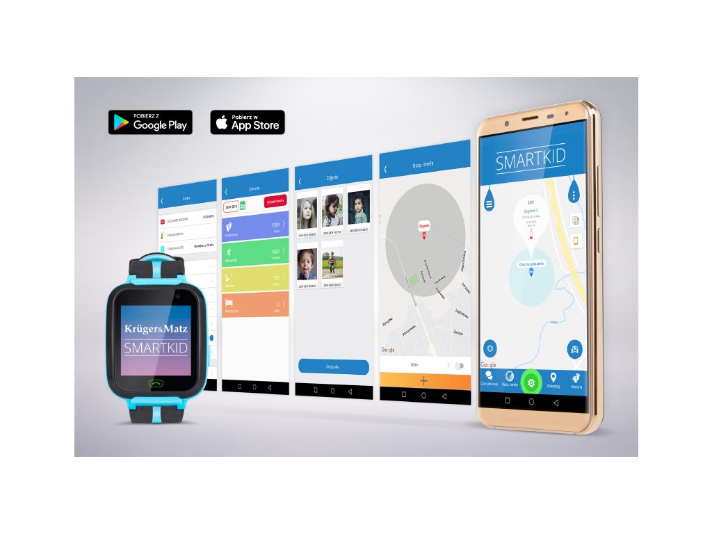 Pre hodinky bola vytvorená špeciálna aplikácia KrugerMatz SmartKid. Vďaka nemu budete dostávať oznámenia, kontaktovať svoje dieťa a rýchlo ho lokalizovať. Okrem toho môžete vďaka funkcii odpočúvania kedykoľvek skontrolovať okolie svojho zverenca.