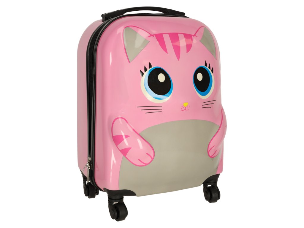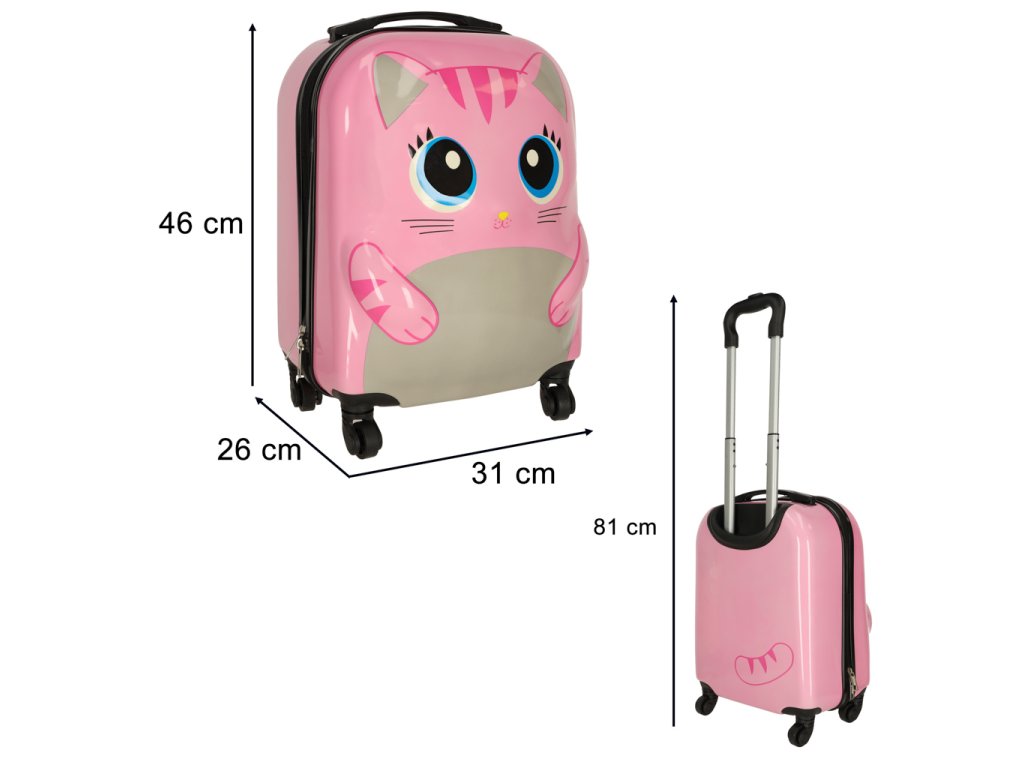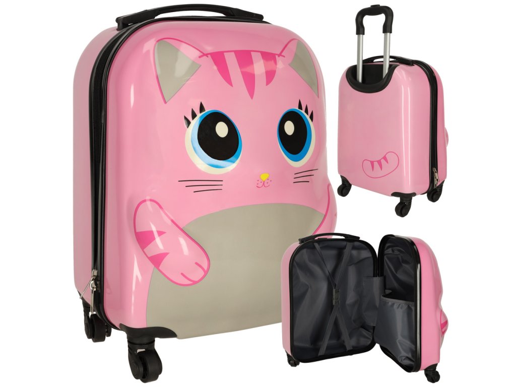 DETSKÝ CESTOVNÝ KUFOR PRÍRUČNÁ BATOŽINA NA KOLIESKACH MAČKA RUŽOVÁ