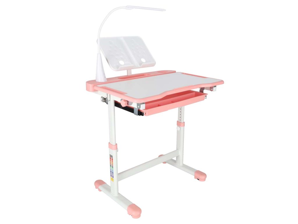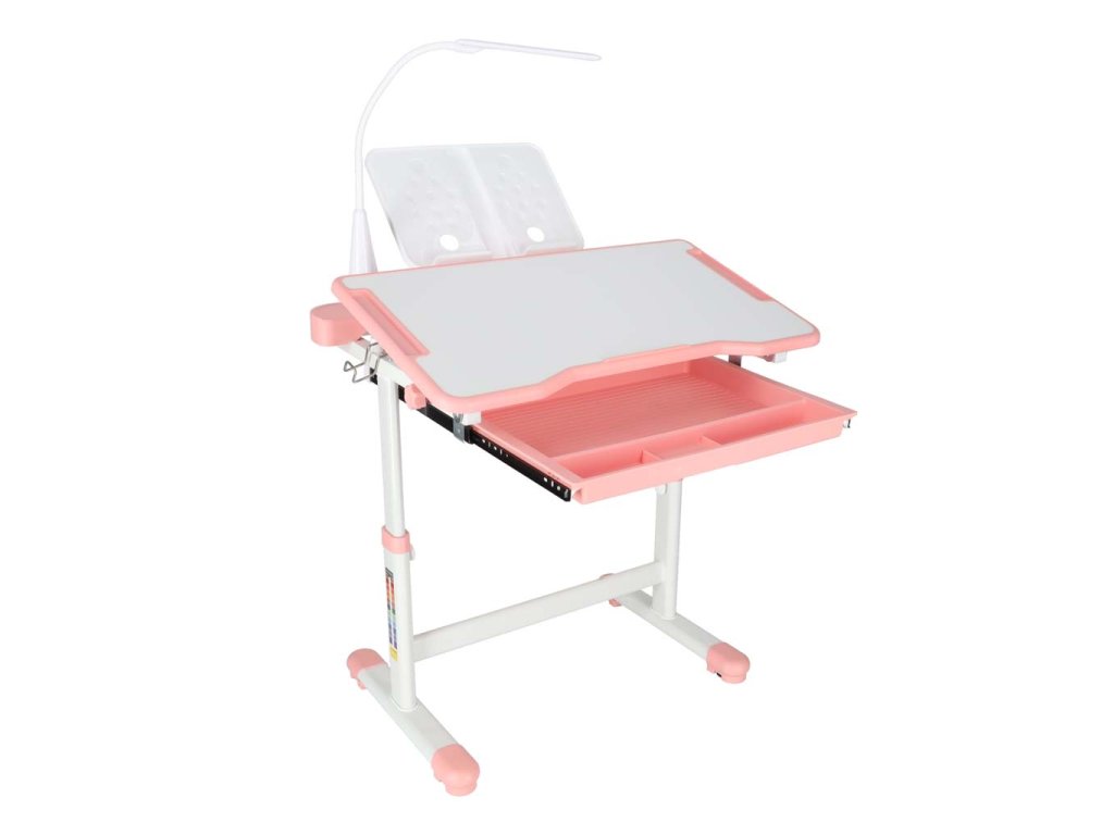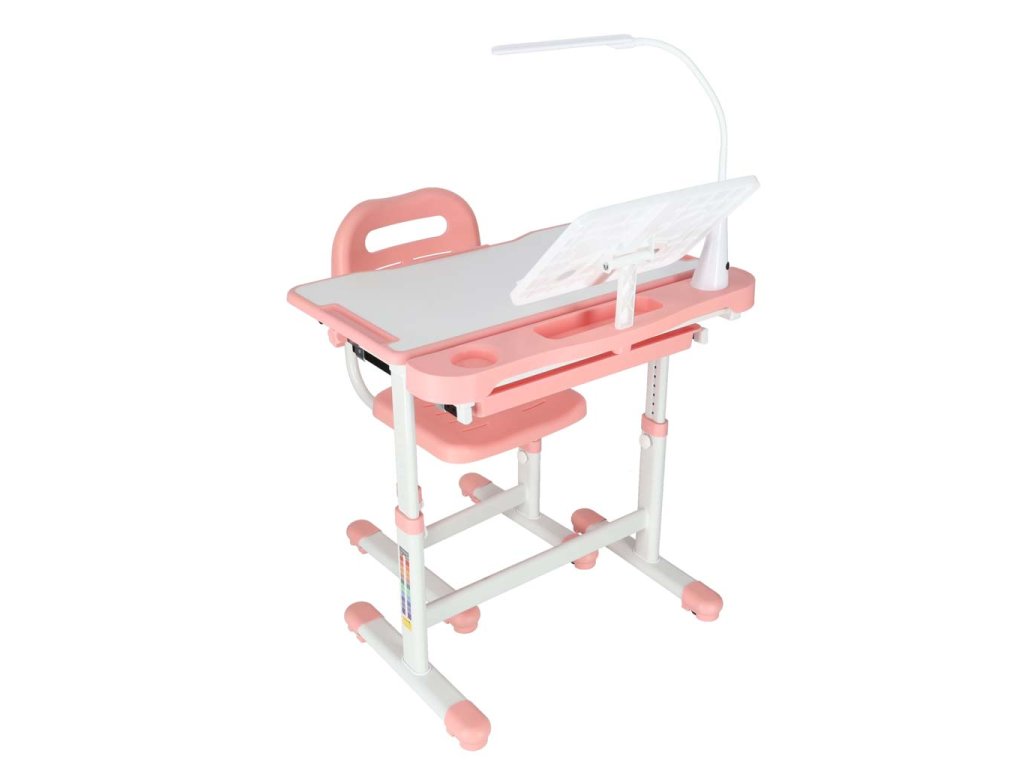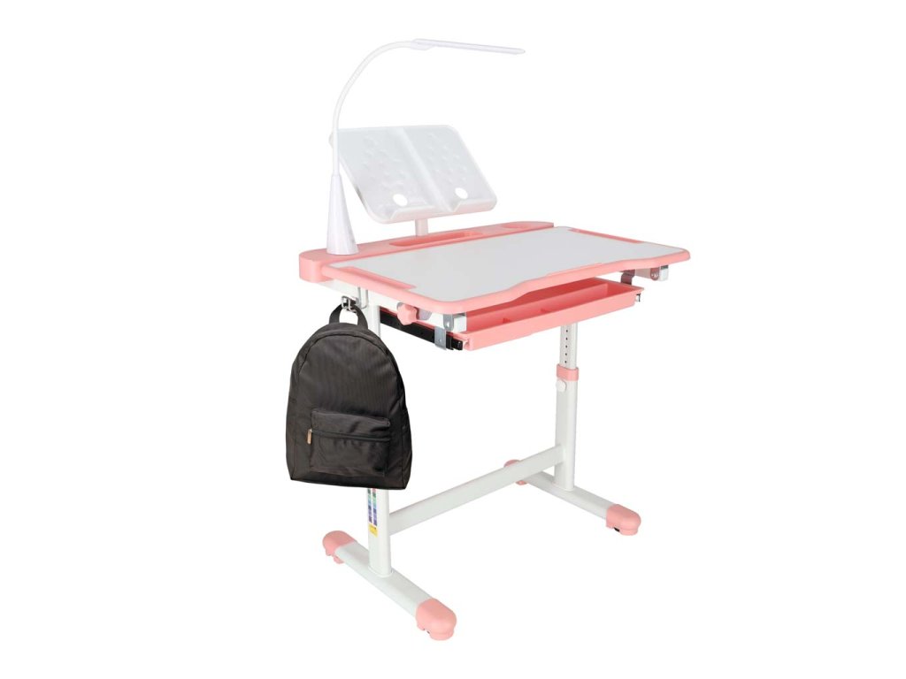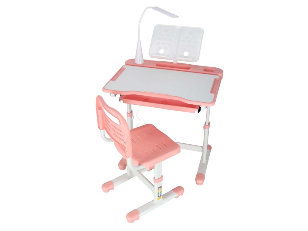 Detský písací stôl so zásuvkou stolička lampa ružová