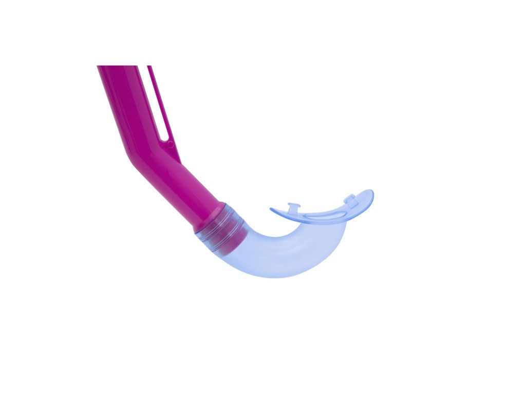 Súčasťou sady je aj šnorchel, cez ktorý môžete dýchať pri plávaní pod vodou. Silikónový náustok sa prispôsobí tvaru úst a špeciálna koncovka zabraňuje vnikaniu vody dovnútra.