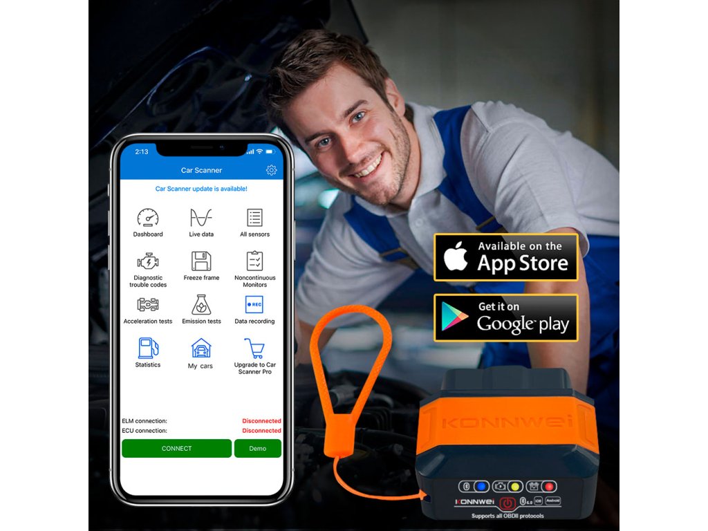 Prístroj Konnwei KW906 spolupracuje s aplikáciami na mobilné zariadenia so systémami iOS (vo verzii 8 alebo novšej) a Android (vo verzii 5.0 alebo novšej). Vďaka tomu môžu používatelia ľahko prehliadať diagnostické údaje na svojich smartfónoch alebo tabletoch, čo zvyšuje pohodlie a flexibilitu používania. Komunikácia so zariadením prebieha pomocou rozhrania Bluetooth, čo zabezpečuje bezdrôtový prístup k diagnostickým informáciám.
