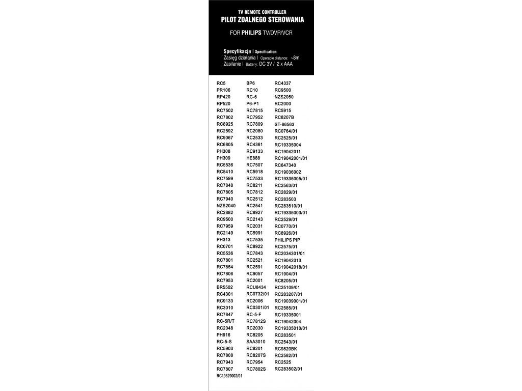 Model je kompatibilný s viacerými ovládačmi Philips a môže byť vhodný pre širokú škálu zariadení z tejto značky. Pred nákupom odporúčame porovnať označenie pôvodného ovládača alebo overiť kompatibilitu podľa uvedených kódov.