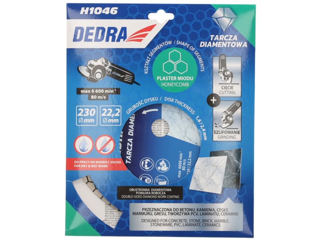 Diamantová kotúč so segmentom typu plást DEDRA H1046 je určený na mokré a suché rezanie, pričom si výborne poradí s spracovaním rôznych materiálov.