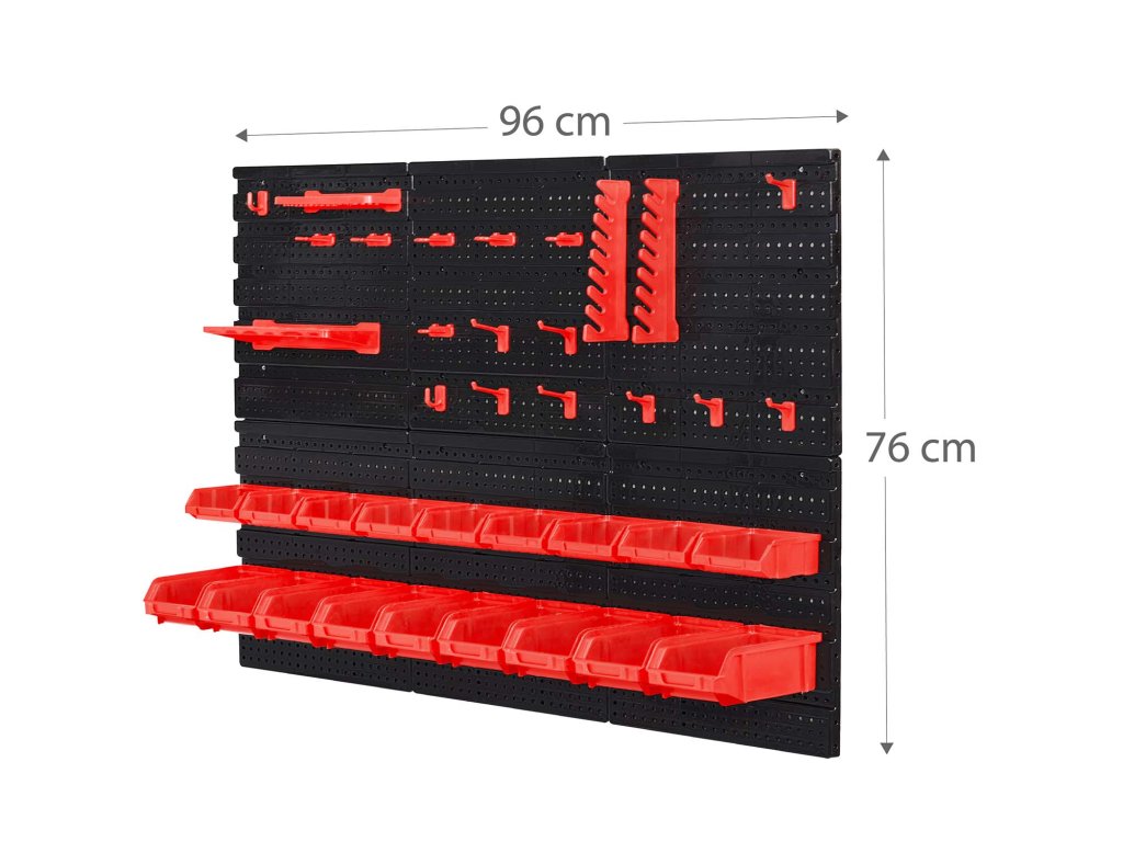 Nástenná doska 96 x 76 cm navrhnutá špeciálne na dielenské použitie – ideálna na skladovanie a triedenie náradia a príslušenstva. Uplatní sa ako v profesionálnom servise, tak aj v domácej garáži.