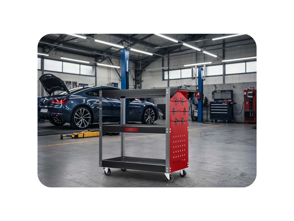 Model HM-515 je vozík navrhnutý špeciálne na použitie v dielni – ideálny na ukladanie a prepravu nástrojov, častí a príslušenstva. Využitie nájde v profesionálnom servise aj v domácej garáži.