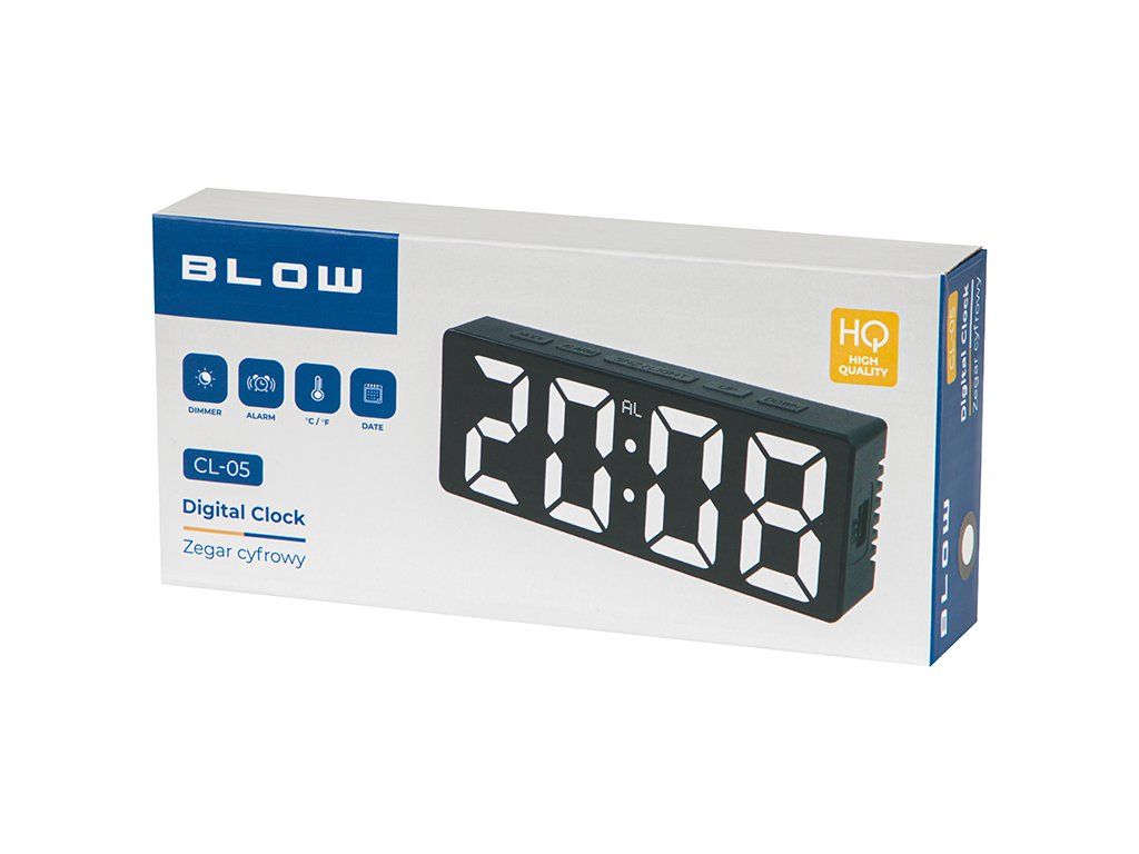 Digitálne hodiny BLOW CL-05 spájajú viac praktických funkcií v jednom kompaktnom zariadení. Sú vhodné pre každého, kto hľadá spoľahlivé hodiny s budíkom, teplomerom a dátumom v prehľadnom prevedení. Vďaka nastaviteľnému jasu a nočnému režimu sú pohodlné na používanie cez deň aj v noci.