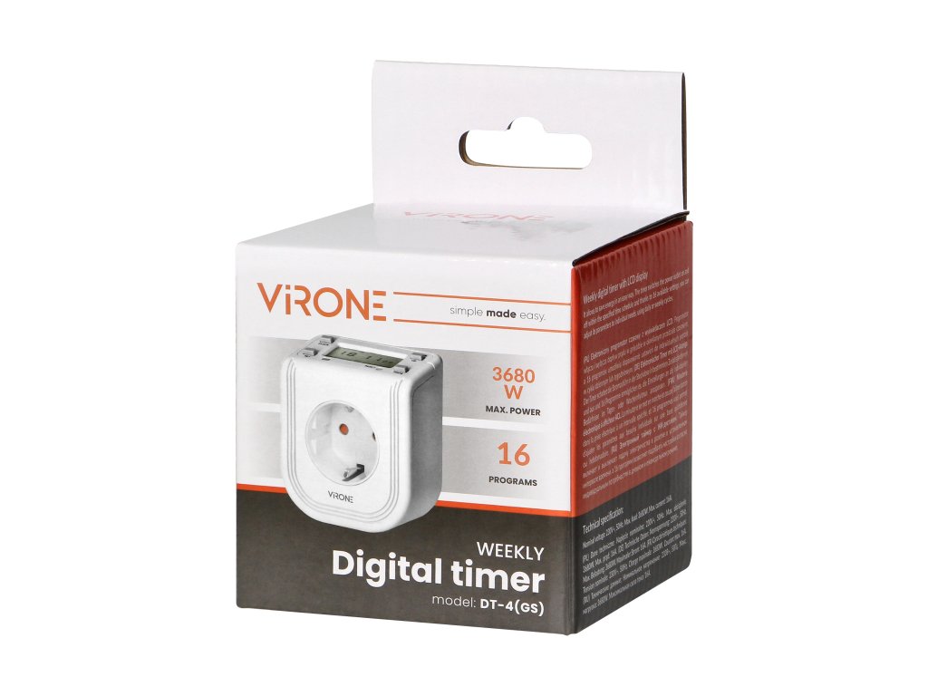 - Až 16 režimov: Digitálny časovač ponúka plnú flexibilitu s možnosťou nastavenia až 16 rôznych programov. Už žiadne manuálne zapínanie a vypínanie zariadení – nechajte časovač pracovať za vás.