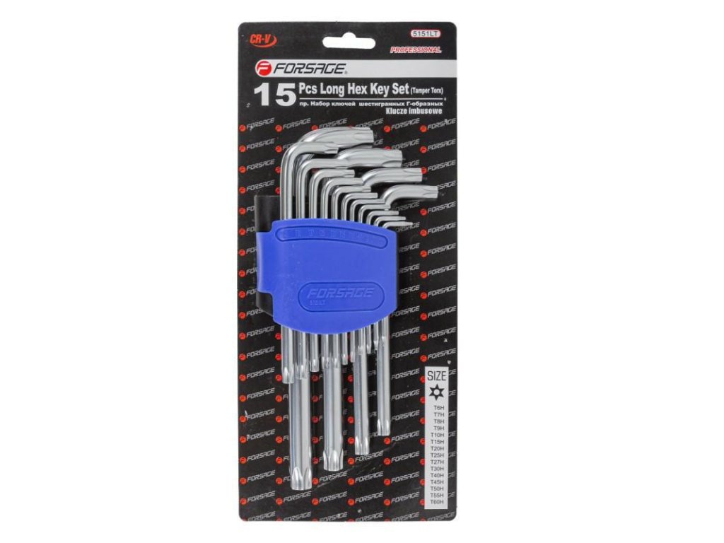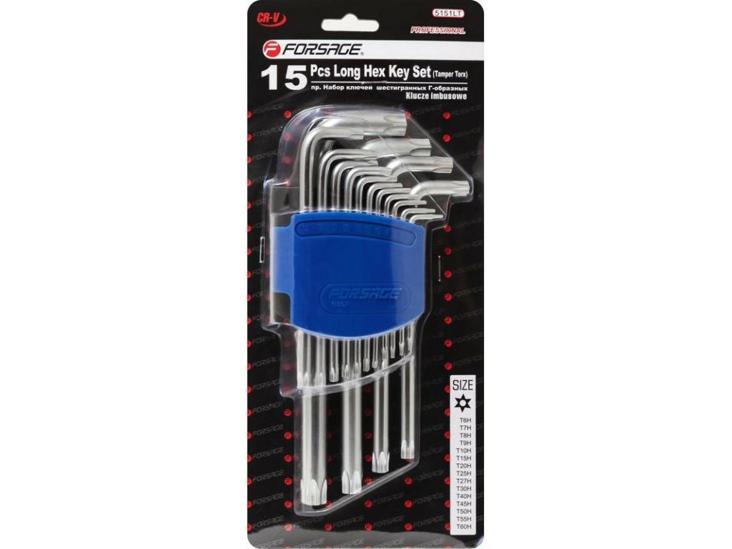 Sada 15 kusov obojstranných kľúčov TORX, dlhých v rozmeroch od T6H do T60H.