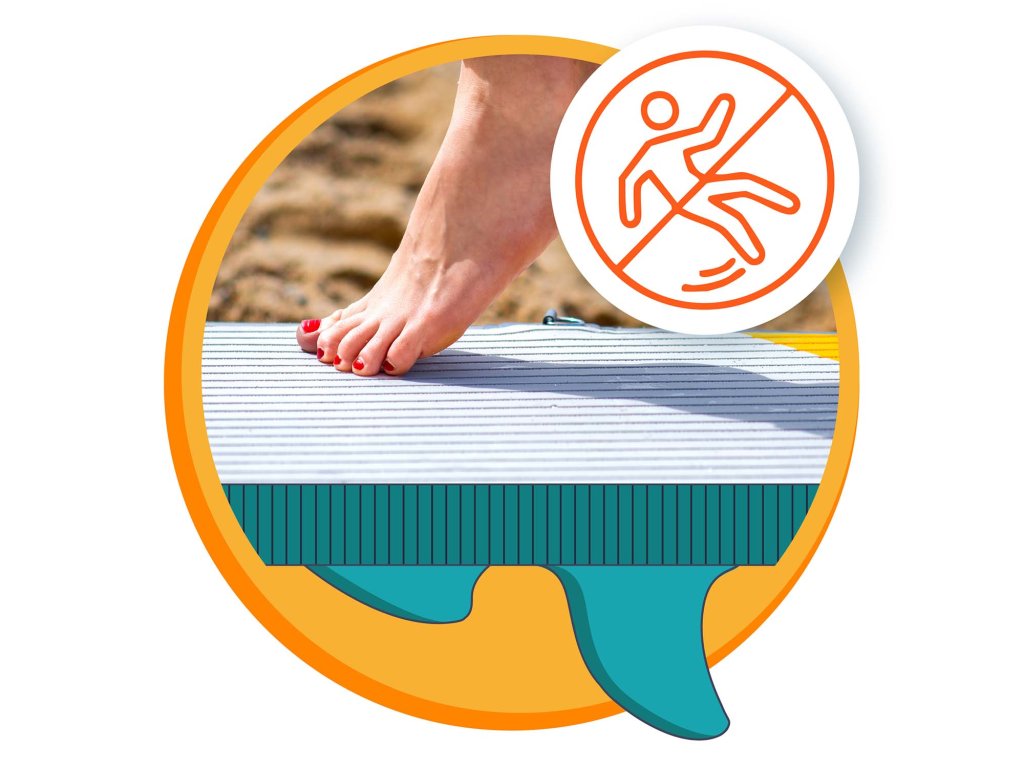 Protišmykový povrch zaručuje istý úchop aj pri mokrých nohách, a 3 stabilizátory zaručujú vynikajúcu kontrolu a jednoduché manévrovanie. Plávaj sebavedome – bez obáv o stratu rovnováhy.