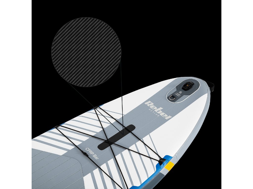 Doska Rebel Active bola vybavená dvoma úchytmi – centrálnym a zadným – uľahčujúcimi transport a pohodlné prenášanie ako osamote, tak aj v dvojici. Vďaka tomu je možné SUP ľahko preniesť na vodu, priamo do auta alebo uskladniť vertikálne, čo zvyšuje komfort používania a šetrí miesto.