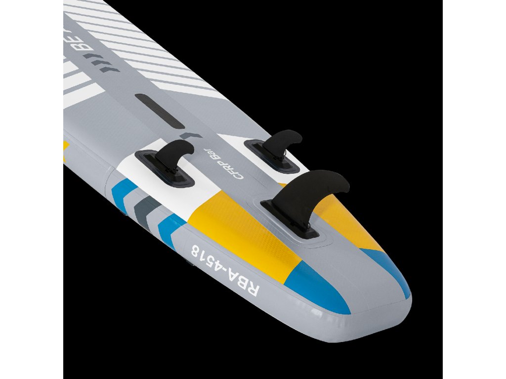 Centrálny upevňovací pás z uhlíkových vlákien je srdcom SUP-a RBA-4518. Zabezpečuje výnimočnú tuhosť a odolnosť pri zachovaní nízkej hmotnosti, vďaka čomu sa doska neohýba pod ťarchou užívateľa ani batožiny. To je záruka stability počas pádlovania a lepšej kontroly, bez ohľadu na podmienky na vode.