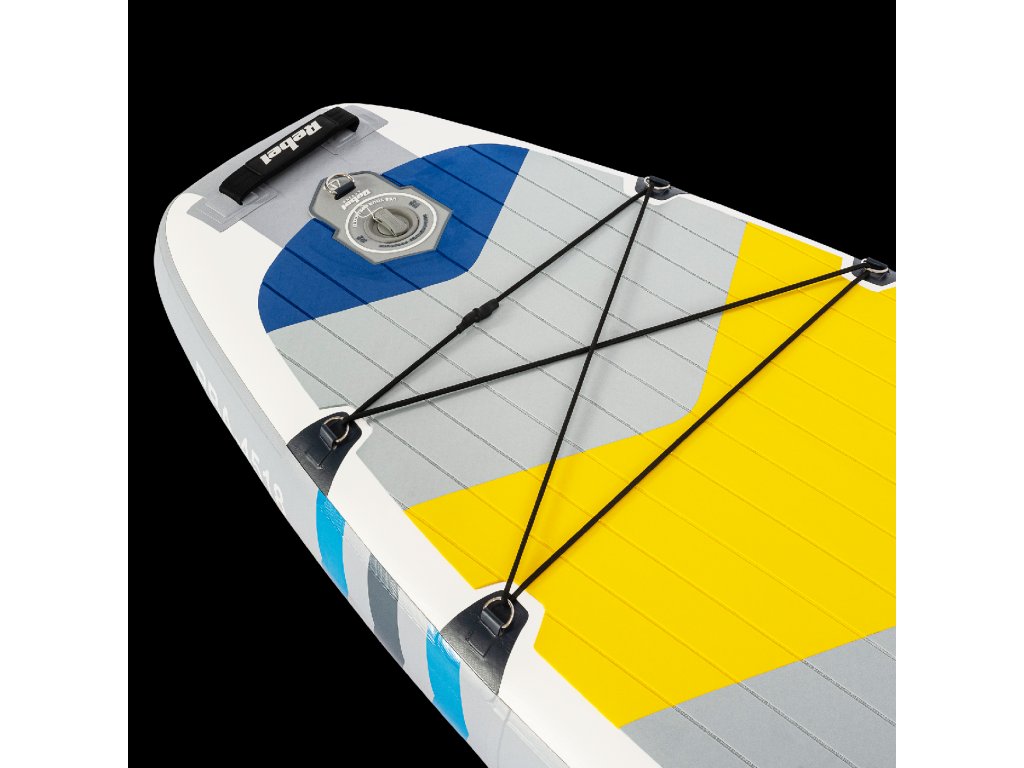 V súprave nájdete aj transportný batoh, ktorý umožňuje pohodlné a bezpečné prenášanie celej súpravy. Odolný materiál chráni dosku pred poškodením, a ergonomické ramenné popruhy zabezpečujú pohodlie aj pri dlhšom nosení. Premyslená konštrukcia obsahuje dosku, pádlo, pumpu a príslušenstvo, čo uľahčuje prípravu na vodné dobrodružstvo za pár minút.