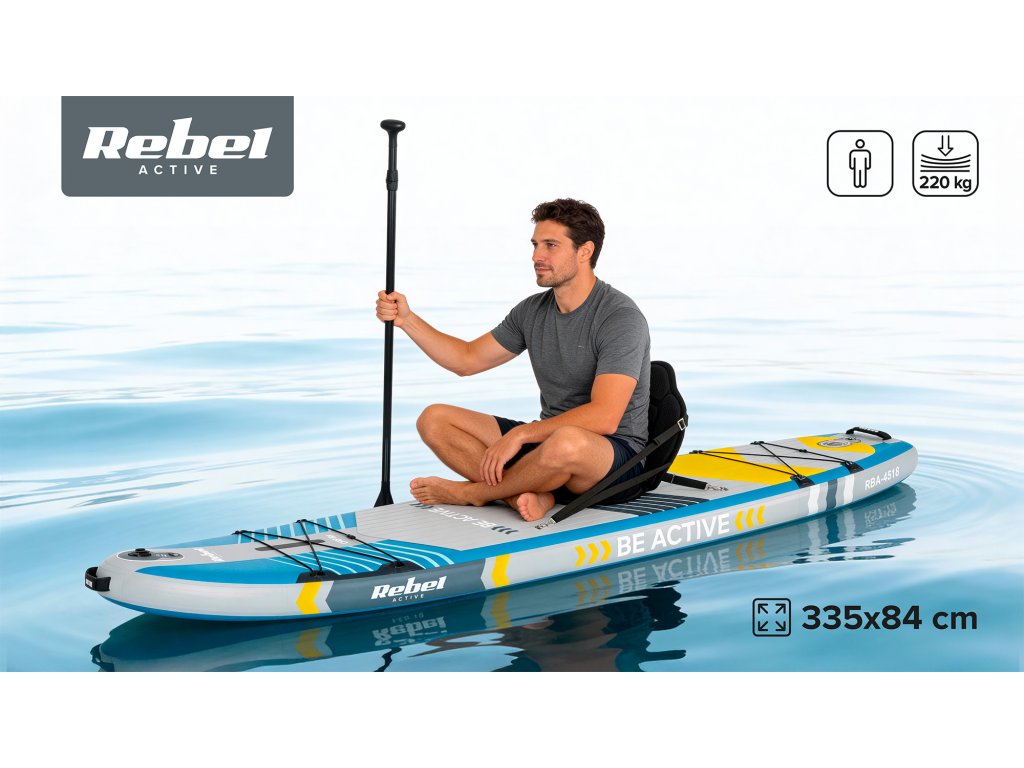 Doska Rebel Active RBA-4518 vznikla technológiou drop-stitch, vďaka čomu po nafúknutí zachováva tuhosť porovnateľnú s tvrdou doskou. Hrubá, jednokomorová konštrukcia s nosnosťou 335 l udržuje stabilitu aj pri maximálnom zaťažení 220 kg, zaisťujúc bezpečnosť a komfort ako pre začiatočníkov, tak aj pre skúsených paddleboardistov.