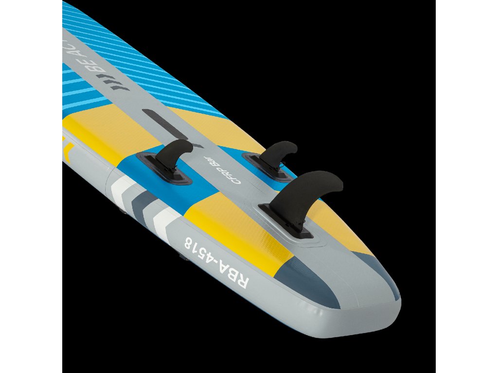 Centrálny pás z uhlíkových vlákien je srdcom SUP-a RBA-4518. Zaisťuje mimoriadnu tuhosť a odolnosť pri zachovaní ľahkosti, takže doska sa nedáva pod váhou užívateľa ani batožiny. To zaručuje stabilitu počas veslovania a lepšiu kontrolu, bez ohľadu na podmienky na vode.
