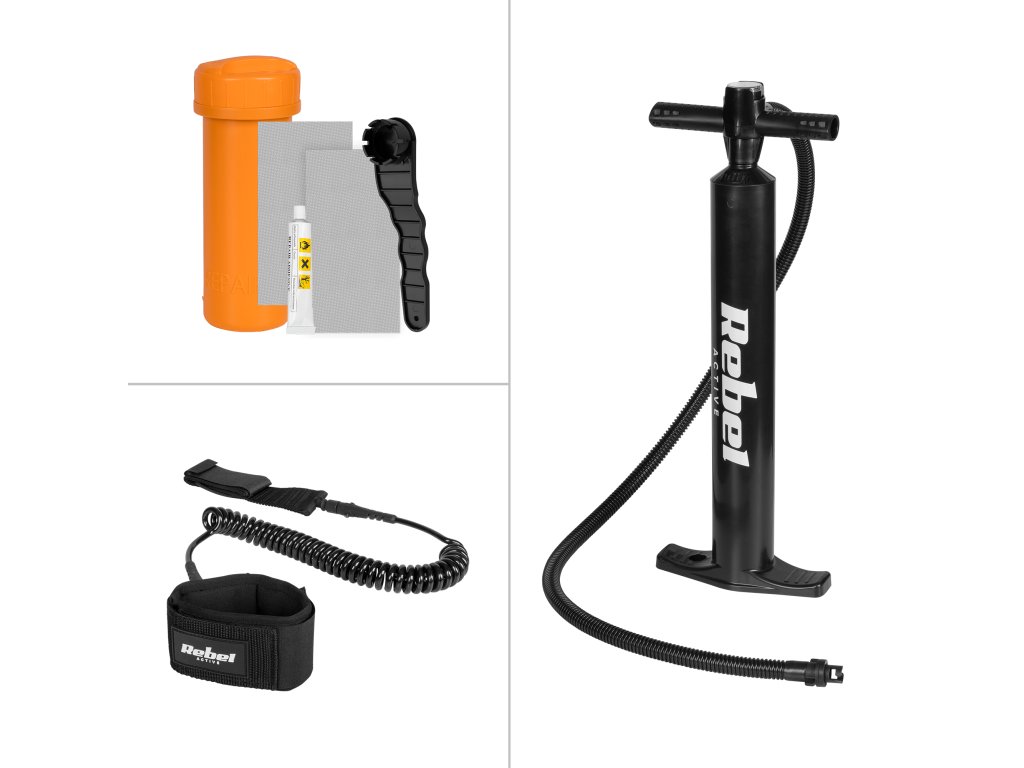 K doske SUP RBA-4518 dostanete ručnú pumpu s manometrom, ktorá umožňuje rýchle a efektívne nafúknutie. Navyše, k doske je priložená opravná sada pozostávajúca z ventilového kľúča, troch záplat na opravy a lepidla, takže rýchlo odstránite závadu a okamžite sa vrátite k ďalšiemu plávaniu!