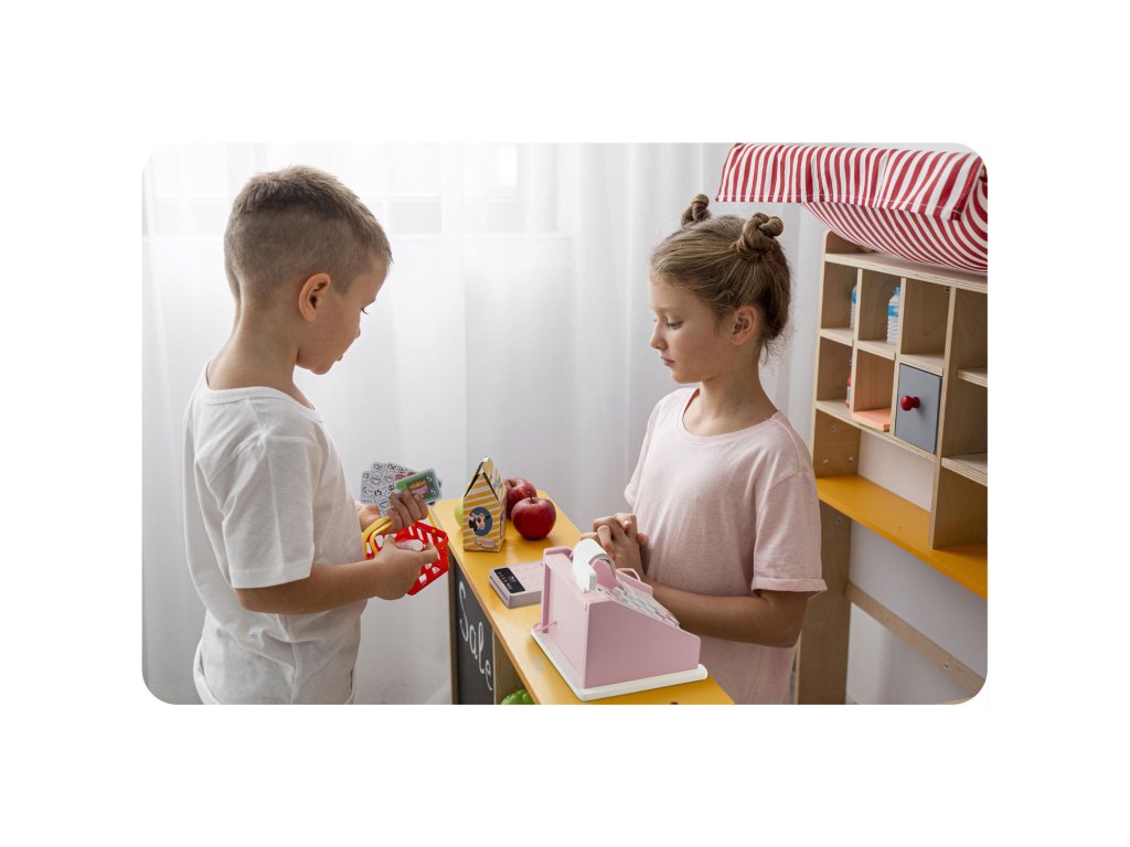 Hra na obchod či pokladňu je skvelý spôsob, ako spojiť učenie so zábavou, umožňujúc deťom rozvíjať rôzne zručnosti prirodzeným spôsobom.