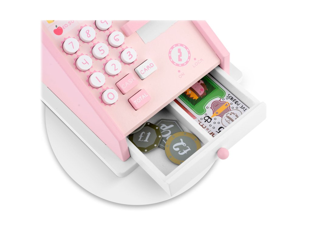 - Pokladňa s otvárateľnou zásuvkou, do ktorej sa zmestia bankovky a mince z balenia.