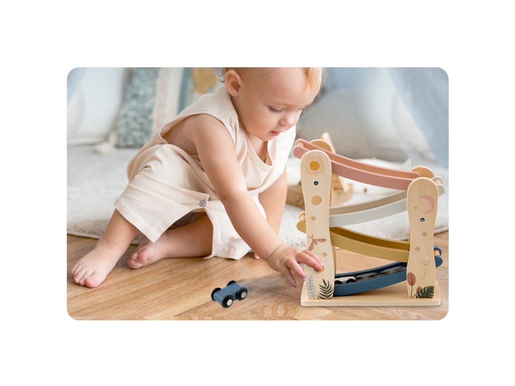Konštrukcia autíčok a šmykľavky je navrhnutá tak, aby dieťa mohlo uchopiť hračku pohodlne a intuitívne.