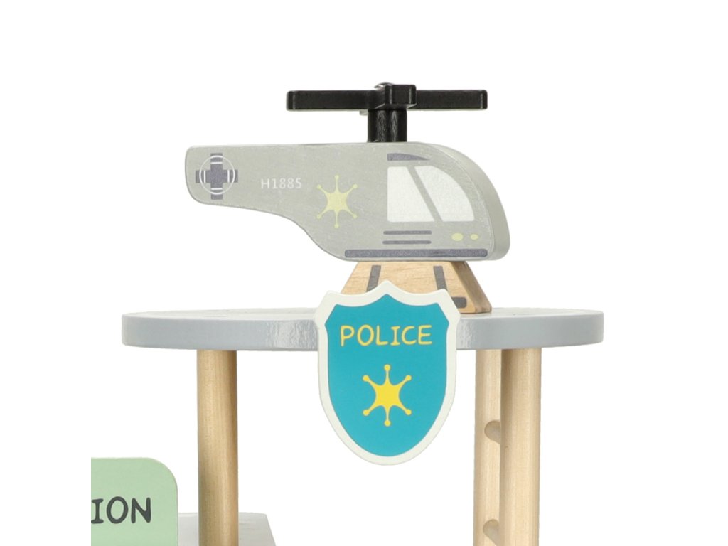 Trojposchodová policajná stanica zaručuje dobrodružnú hru. Na prízemí sa nachádza garáž pre policajné auto a cela pre šikovných zločincov. Na strednom poschodí sa nachádza kancelária policajného náčelníka, ktorá je miestom velenia pre celý policajný tím. Na najvyššom poschodí je pristávacia plocha pre vrtuľník, aby sa skúsený policajt dostal na miesto činu ešte rýchlejšie.