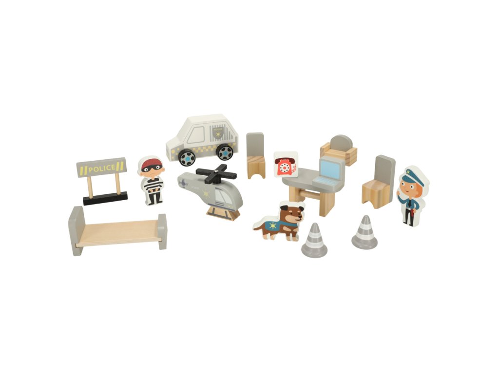kompletne z dreva - policajná stanica a príslušenstvo sú vyrobené z kvalitného dreva, aby sa vaše dieťa mohlo z hračky tešiť čo najdlhšie