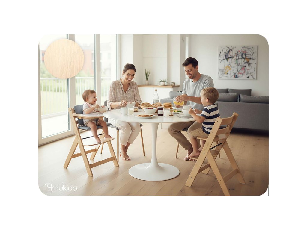 Univerzálne použitie: stolička NUKIDO je ideálne miesto na spoločné jedlá pri rodinnom stole, ale aj na hry a učenie. Nelo je skvelé na kreslenie, maľovanie či hranie sa s kockami.