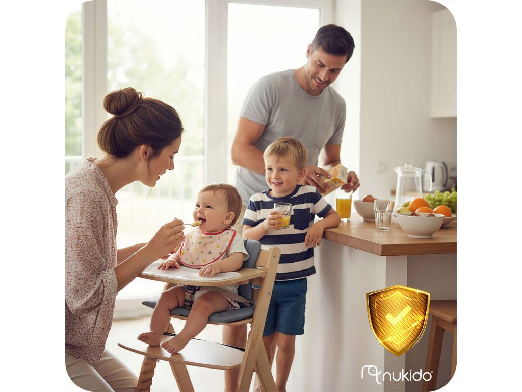 Stolička značky Nukido je plne certifikovaná, čo zaručuje úplnú bezpečnosť vášmu bábätku.