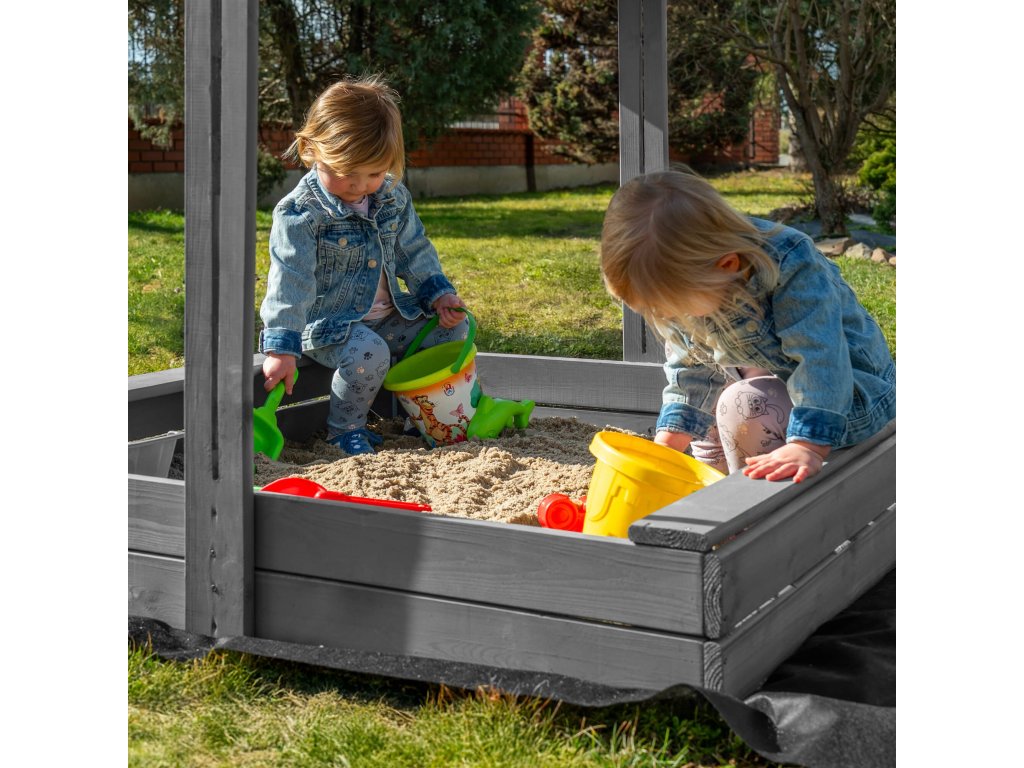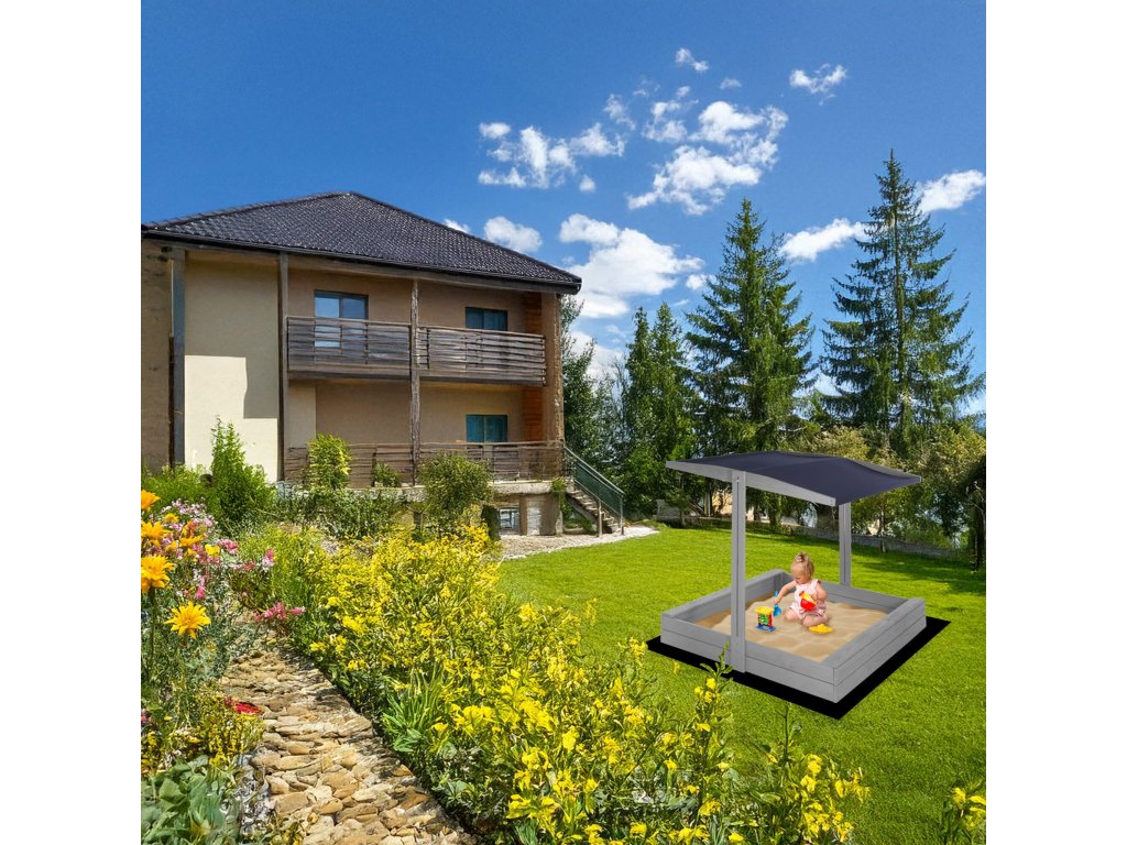 DREVENÉ PIESKOVKO PREMIUM 120 X 120 CM so strechou SBP120RSET01