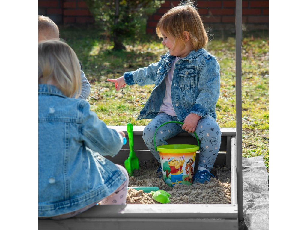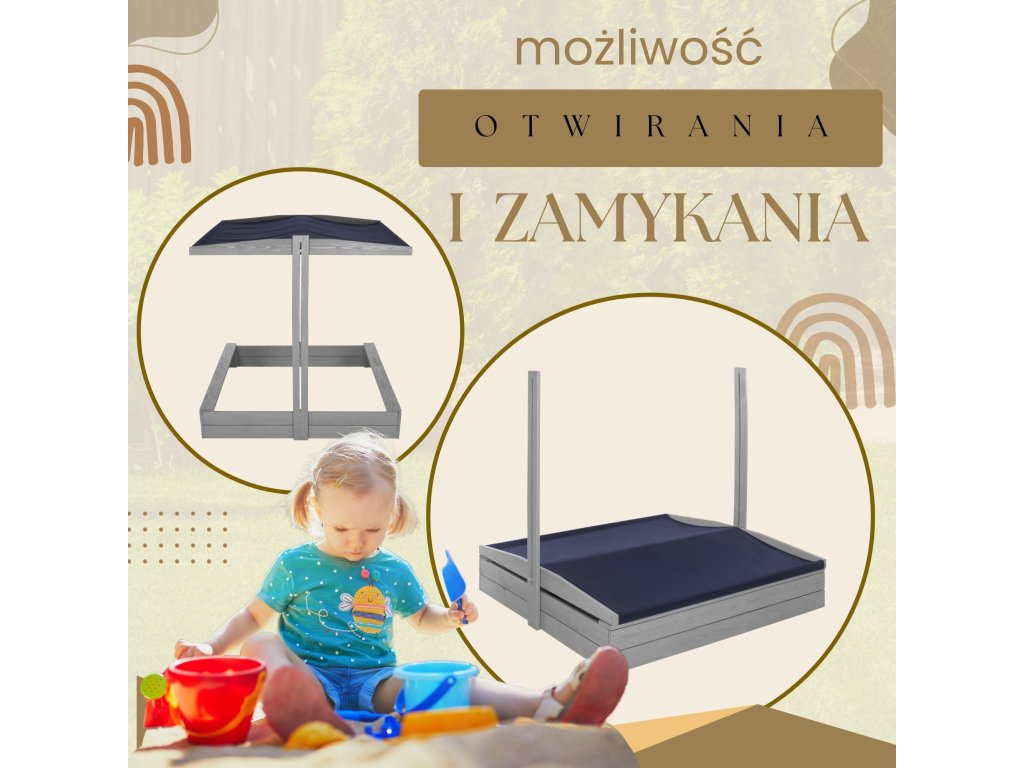 - Striešku je možné spustiť na zakrytie pieskoviska