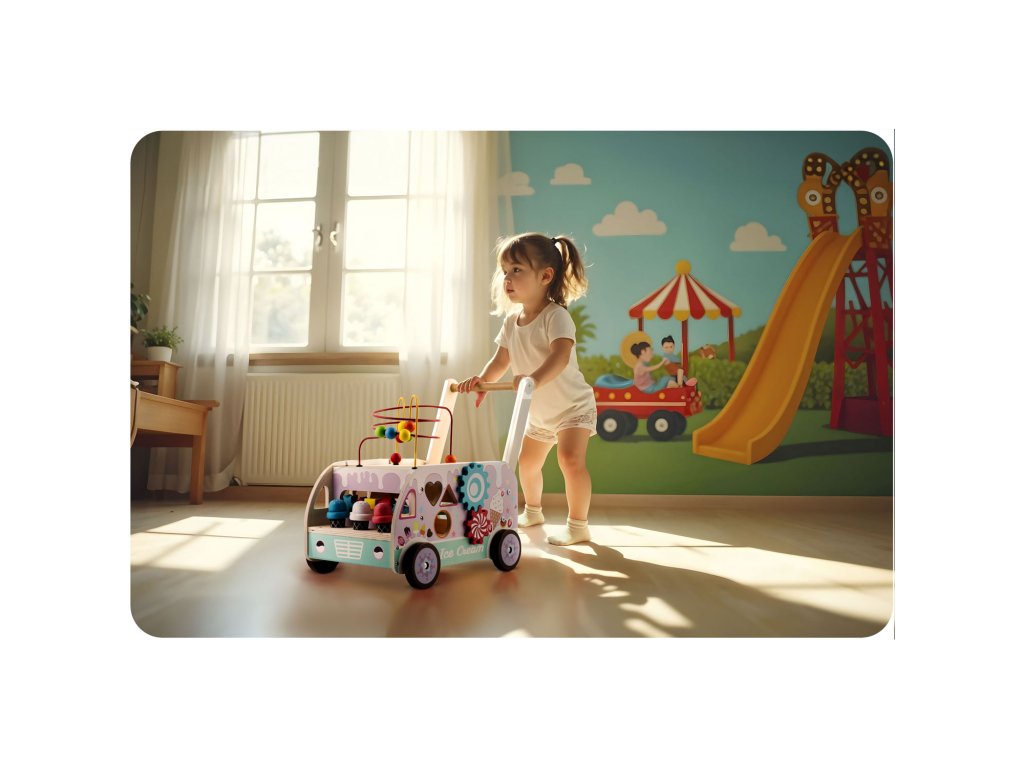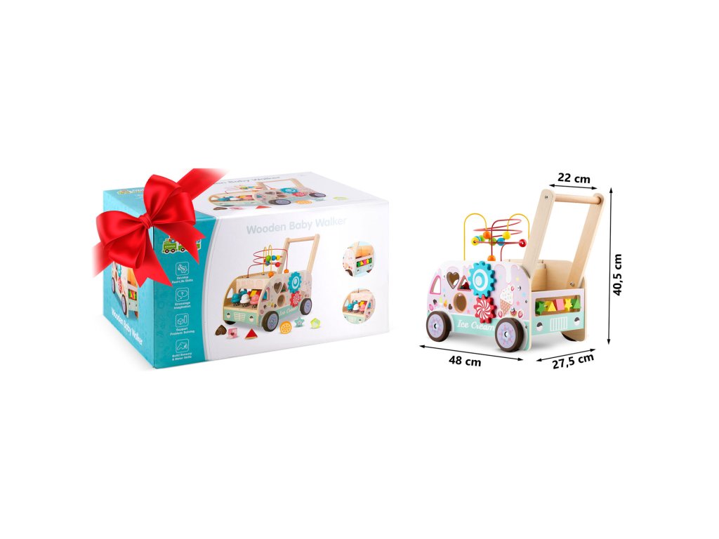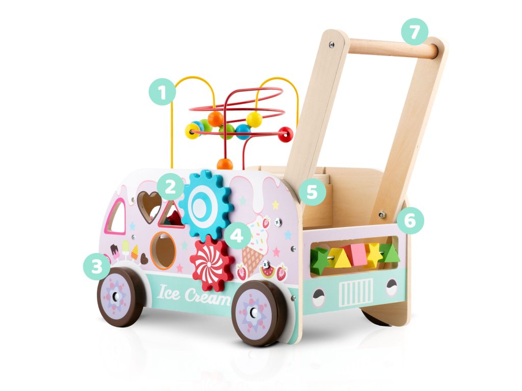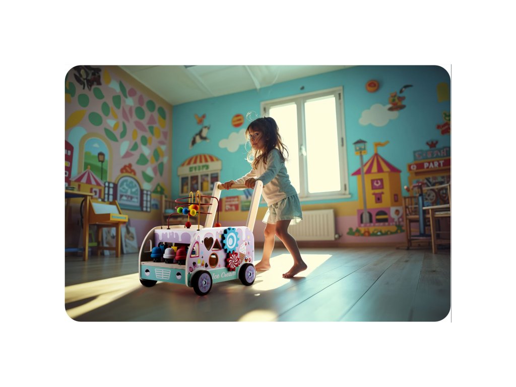 - Drevený chodák kombinuje vzdelávacie prvky s fyzickou aktivitou, povzbudzujúc deti k tvorivému mysleniu.