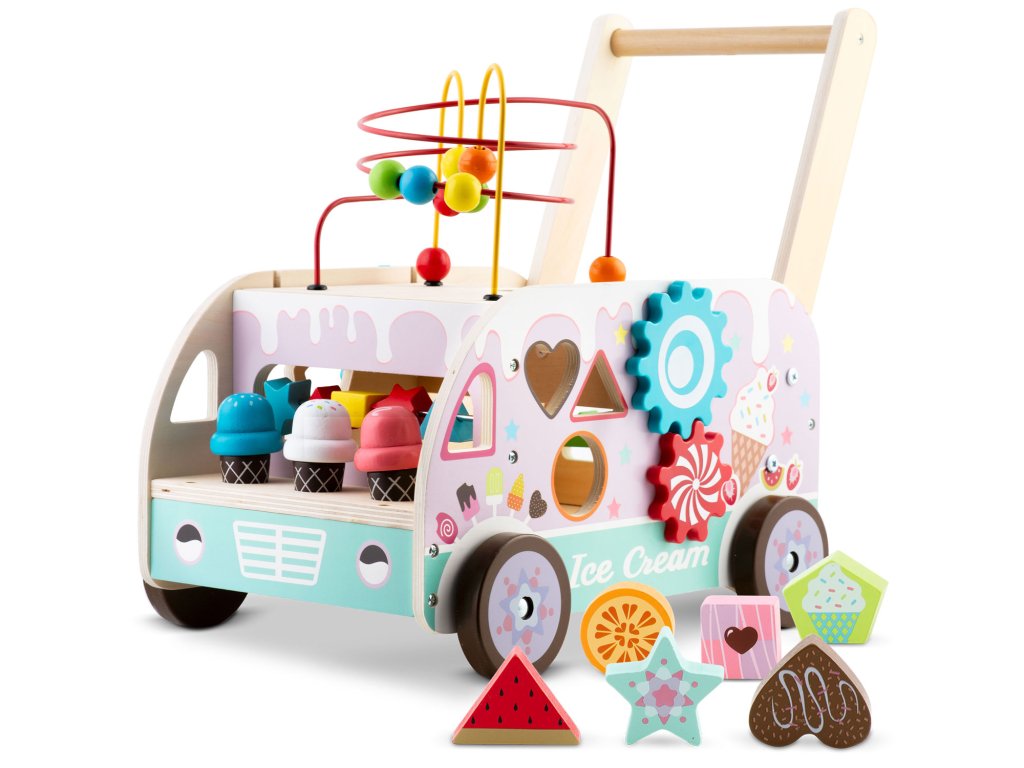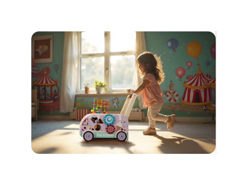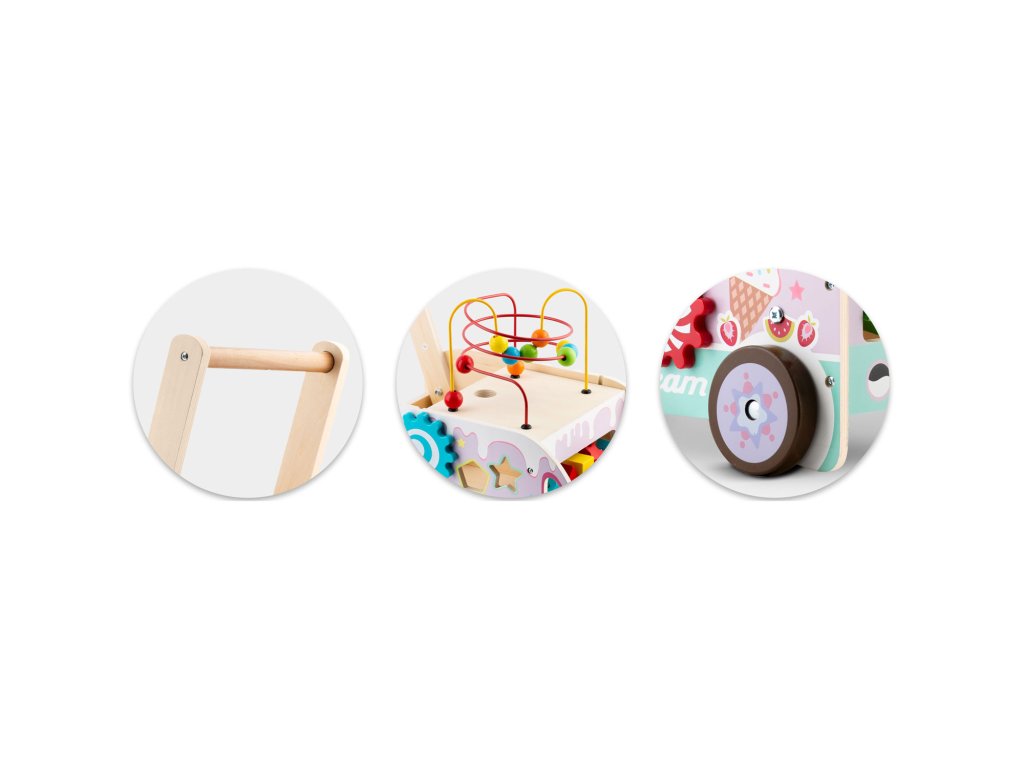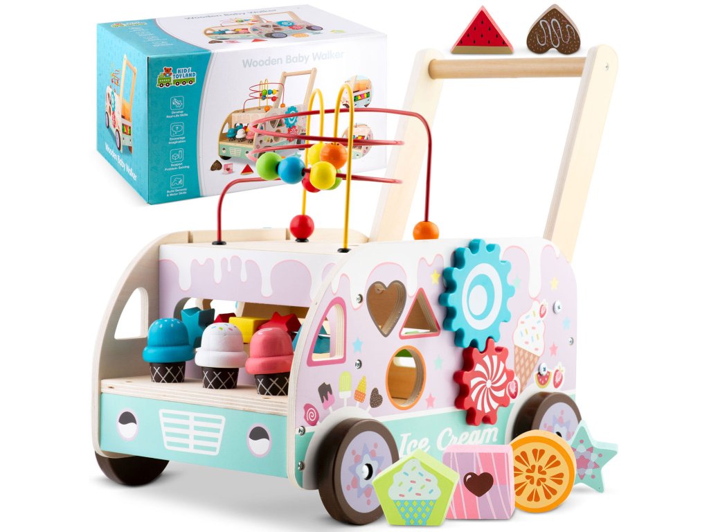 - Drevený chodák kombinuje vzdelávacie prvky s fyzickou aktivitou, povzbudzujúc deti k tvorivému mysleniu.