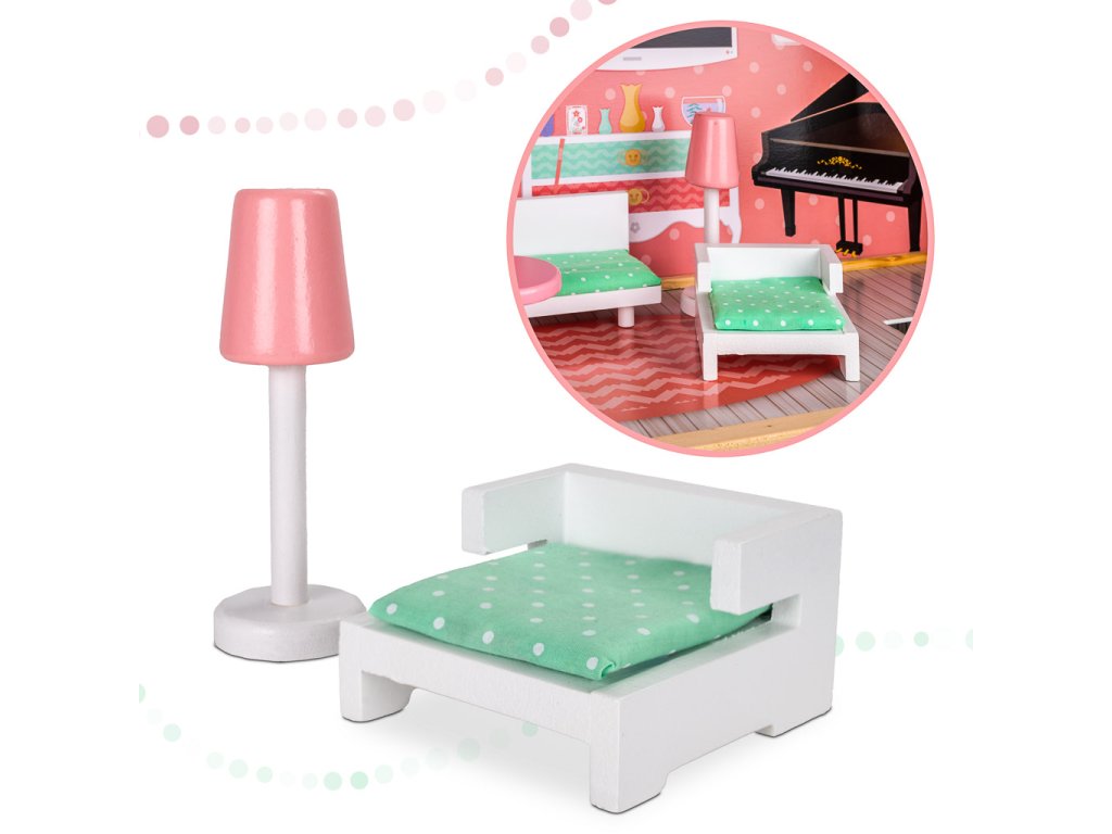 Drevený domček pre bábiky + nábytok pastel 117cm