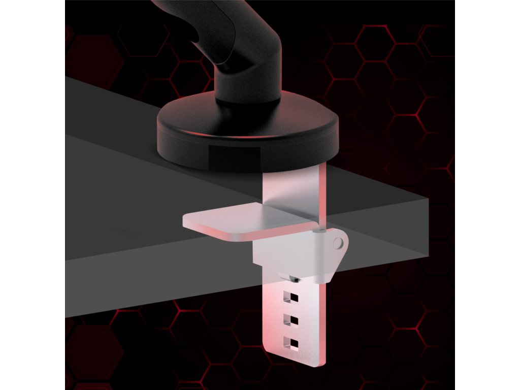 Warrior GU-100 je stolový držiak a čo je najdôležitejšie, ľahko ho pripevníte na takmer každý stôl! Stačí ho priskrutkovať k okraju pracovnej dosky s maximálnou hrúbkou 7 cm alebo cez vnútorný otvor.