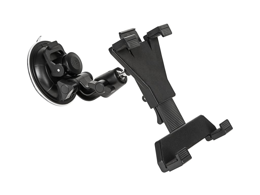 Univerzálny držiak na tablet do auta a iné elektronické zariadenia. Držiak sa montuje na opierku hlavy sedadla alebo sa pomocou prísavky pripevní na čelné sklo. Vďaka odolným komponentom je držiak mimoriadne pevný a robustný. Systém nastavenia umožňuje umiestniť držiak tabletu do správneho uhla. Vhodné pre všetky tablety s uhlopriečkou 7" - 10,2". Držiak jednoducho pripevníte na opierku hlavy alebo čelné sklo bez potreby akéhokoľvek náradia.