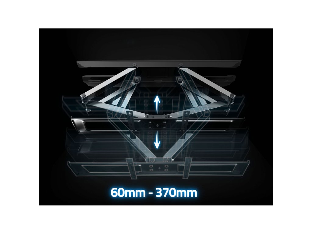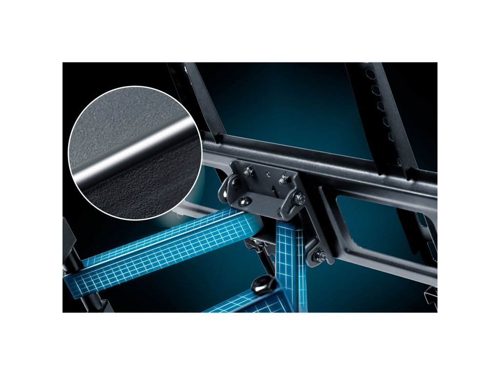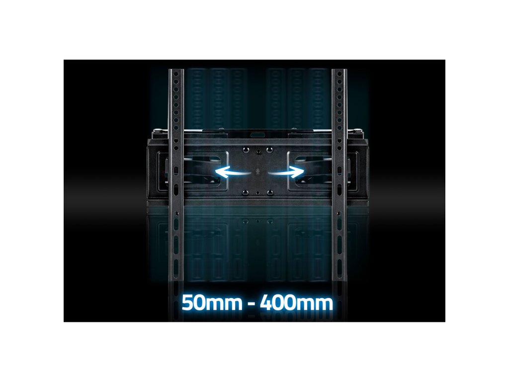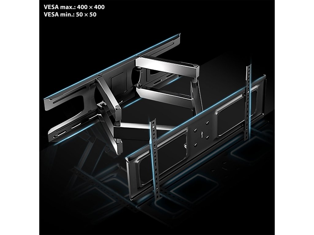 - Regulácia rozstupu montážnych ramien – prispôsobte držiak k štandardu VESA od 50 x 50 do 400 x 400 mm.