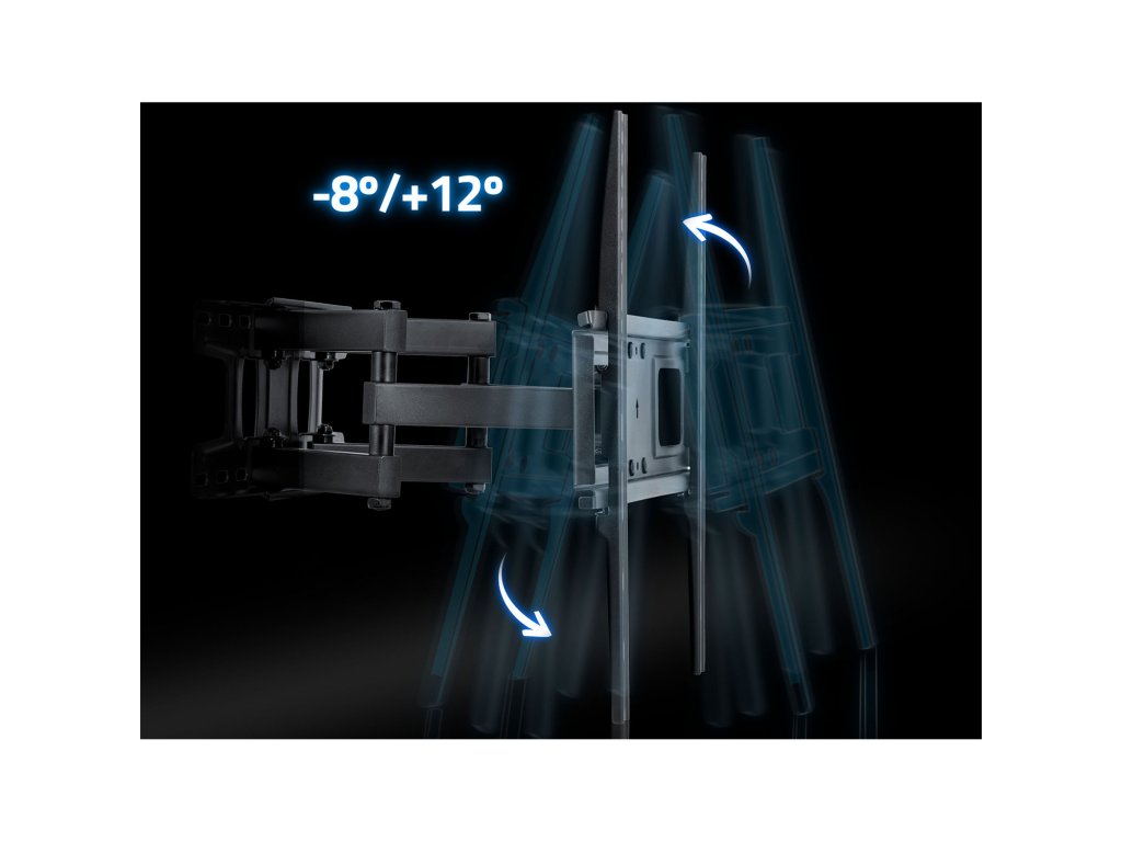 - Vertikálna regulácia od -8° do 12° minimalizuje odrazy a zlepšuje pohodlie sledovania.