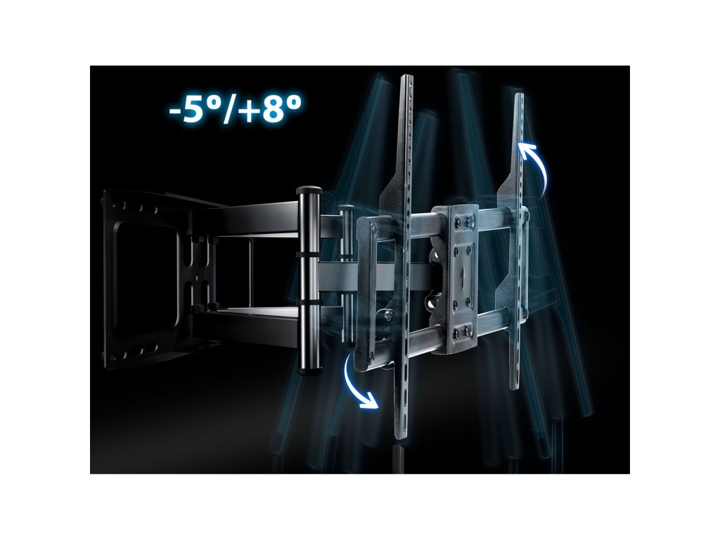 - Vertikálne nastavenie od -5° do 8° minimalizuje odrazy a zlepšuje komfort sledovania.