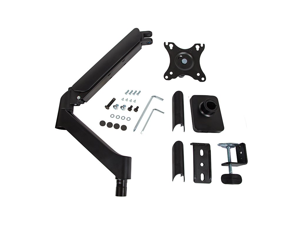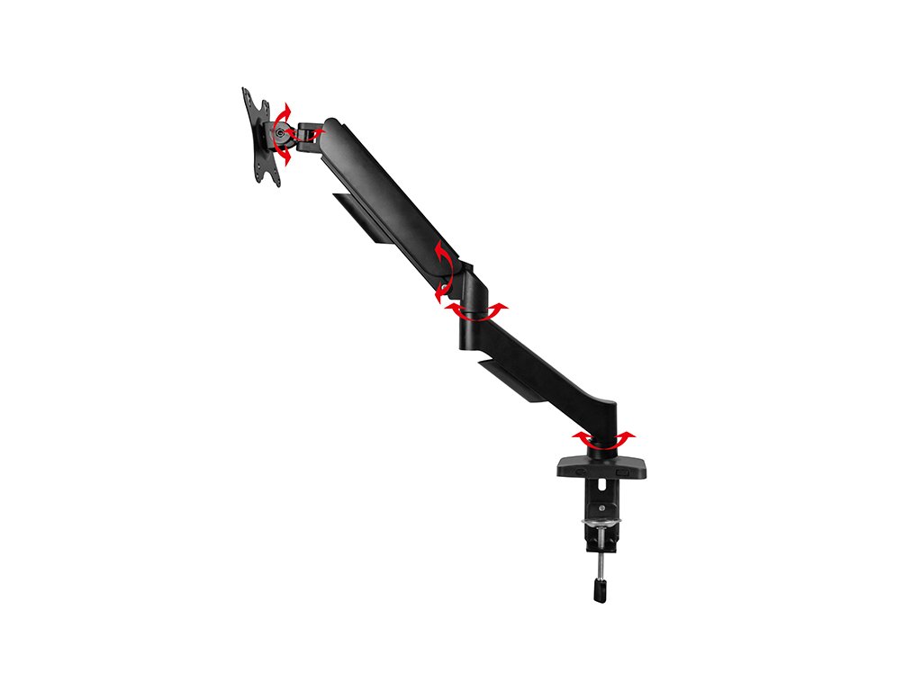 Rameno, ktoré je vybavené pevnou montážnou svorkou, umožňuje pripevniť k prakticky každému povrchu stola alebo iné plochej ploche. Ideálne na použitie v kancelárii a doma. Montáž držiaka nevyžaduje vŕtanie dier do stolov, stolíkov ani do stien. Klasický a elegantný dizajn držiaka sa hodí do každého interiéru