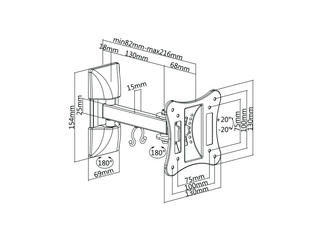 Vzdialenosť od steny: 82 ~ 216 mm