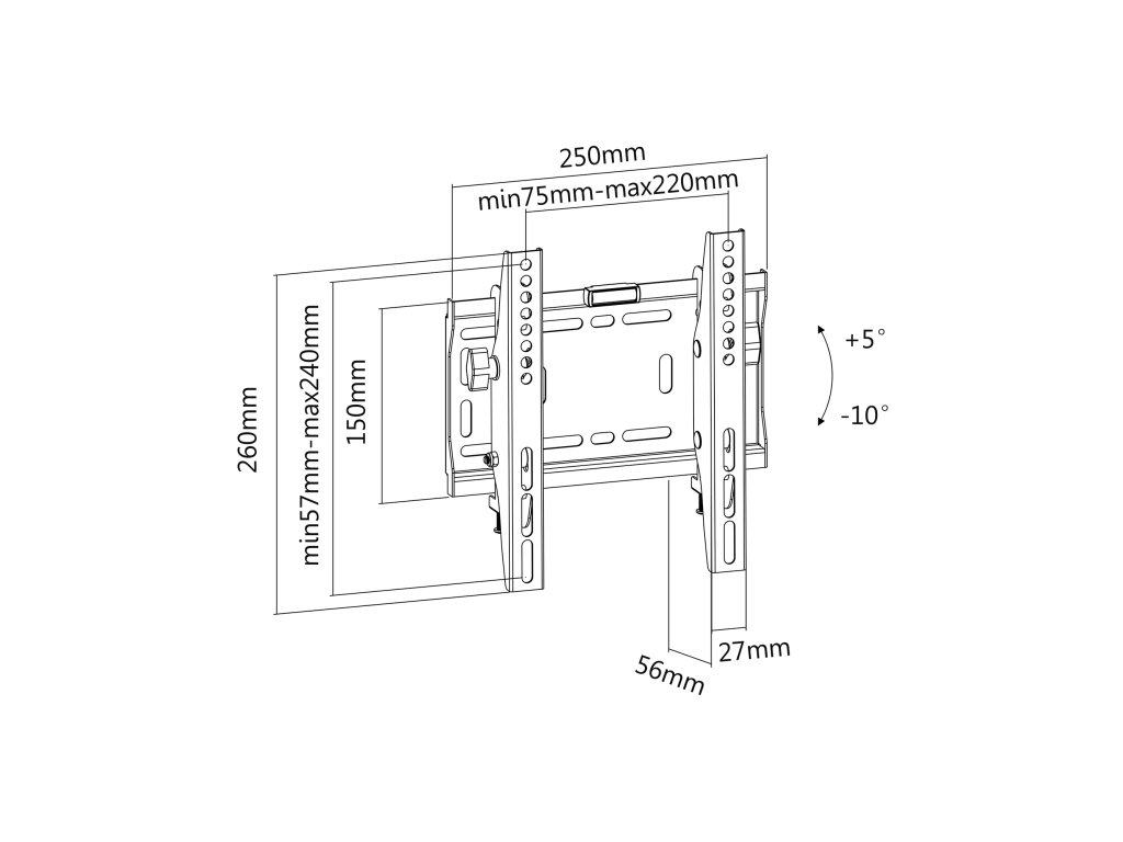 Štandard VESA: 200x200, 200x100, 100x100, 75x75 mm