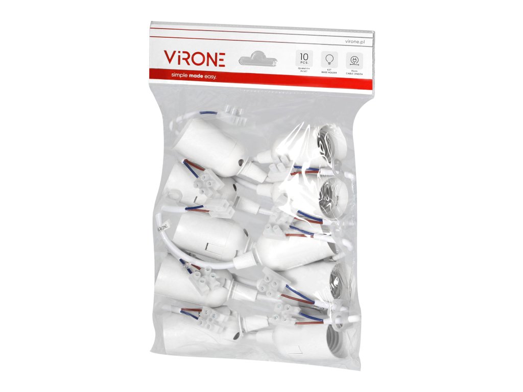 Držiak žiarovky E27 s káblovou svorkou, biely, sada 10 ks