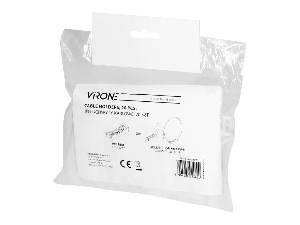 Univerzálny držiak na rúrky, ktorý umožňuje inštaláciu rúrky akéhokoľvek priemeru. Jediným obmedzením je dĺžka káblovej väzby, ktorú máte.Biela farba.